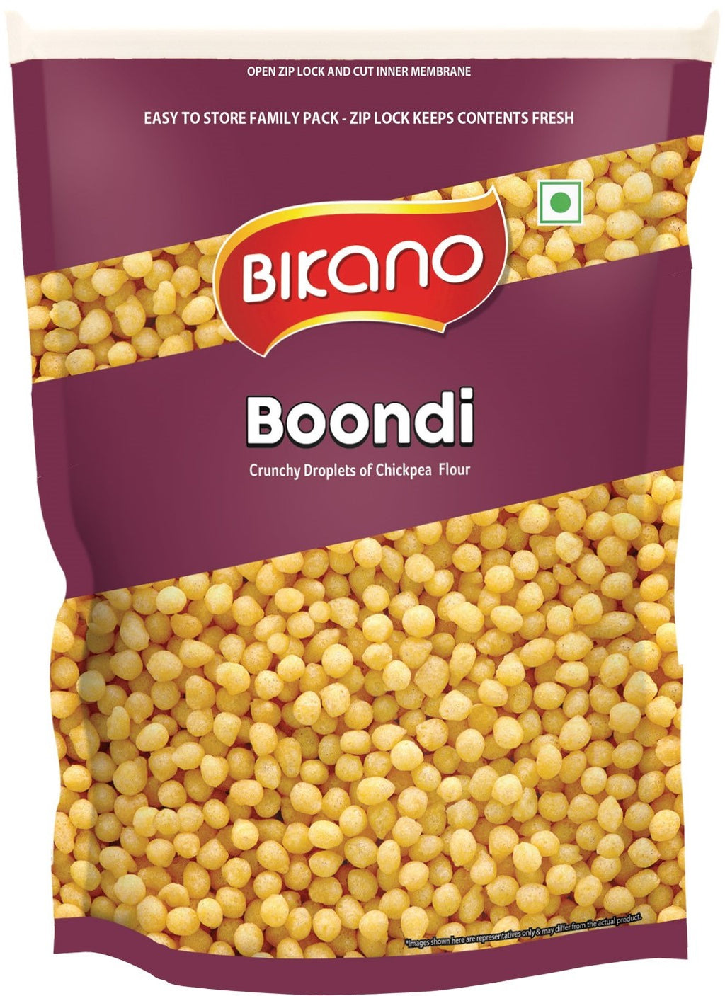 Bikano Boondi Salted - Crispy, fried & salted tiny round balls of gram flour, famous for its different uses. It is usually served during a meal in summers along with curd as "Raita".